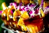 “The Old Lahaina Luau has reinvented itself authentically in a genre rife with cliché. At sunset, guests sit at tables or on lauhala fiber mats on the ground in front of a grass-mound stage. The program offers intelligent narration and excellent ancient hula. The food is authentic Hawaiian and delicious.”