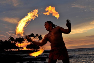 and island dishes. Complimentary cocktails, group hula lessons, a fiery