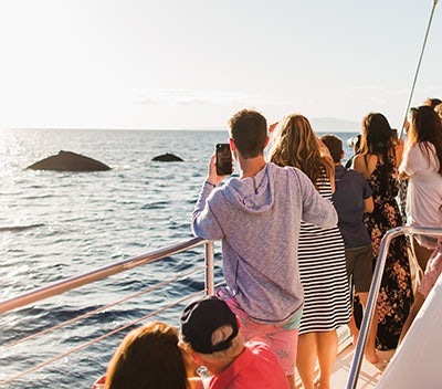 FROM DECEMBER TO APRIL Come aboard and join us as we observe the playful habits of Maui's most consistent return visitor - the humpback whale. The waters off West Maui have long been the favored vacation spot of these massive marine mammals. Enjoy hot and cold hors d'oeuvres, a full ball, and a selection of wine and other beverages while watching the whales play.